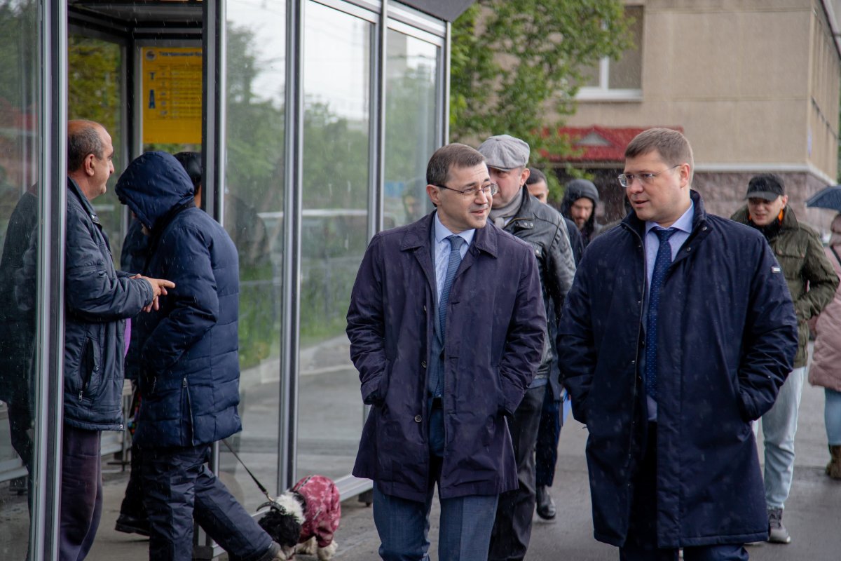 Глава города Мурманска Игорь Морарь и глава администрации Юрий Сердечкин проверили ход ремонтных работ на улице Шмидта.