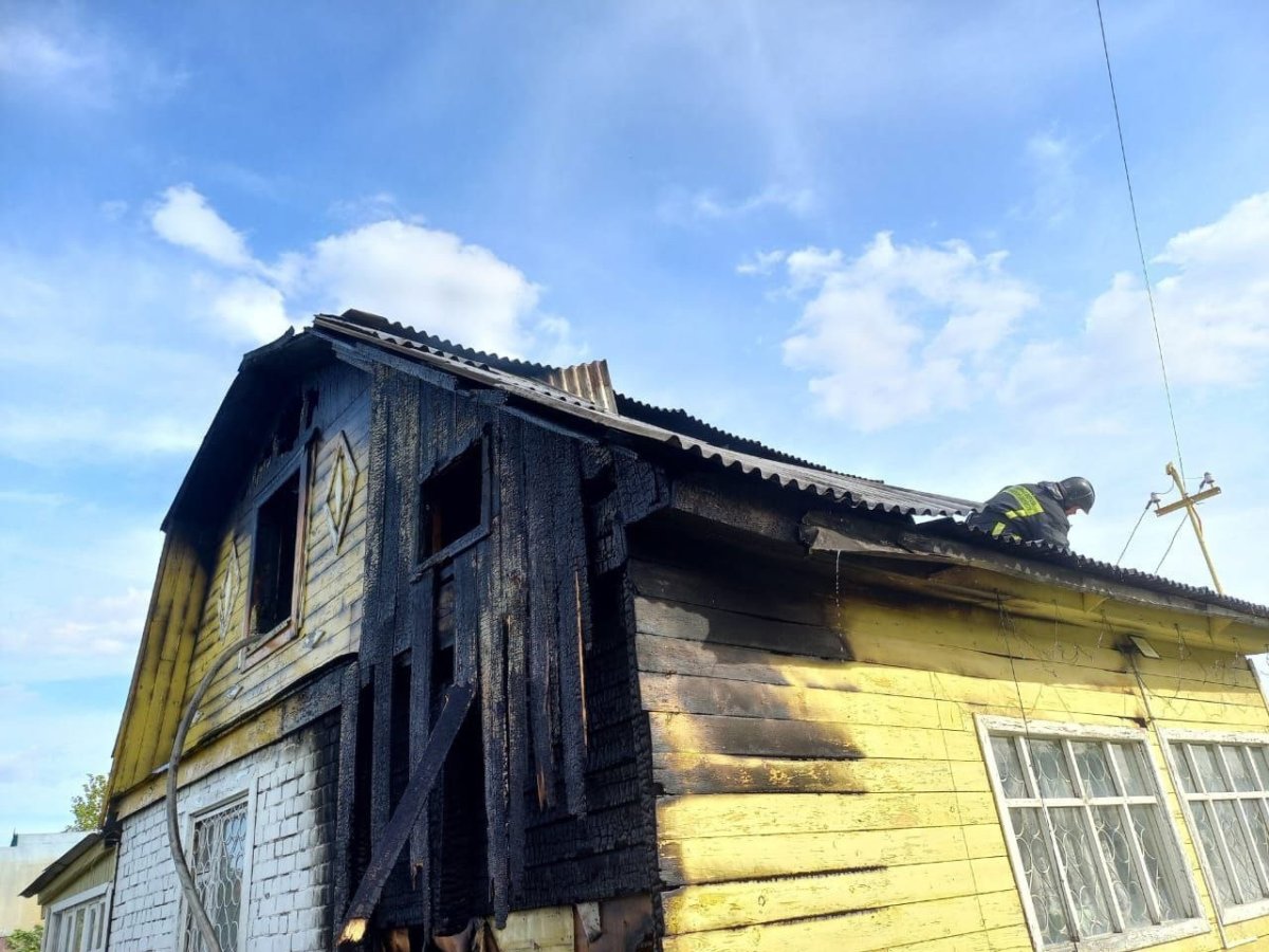 Огонь повредил второй этаж дома и имущество, находящееся в нём. Также обгорела наружная стена деревянной одноэтажной хозпристройки.