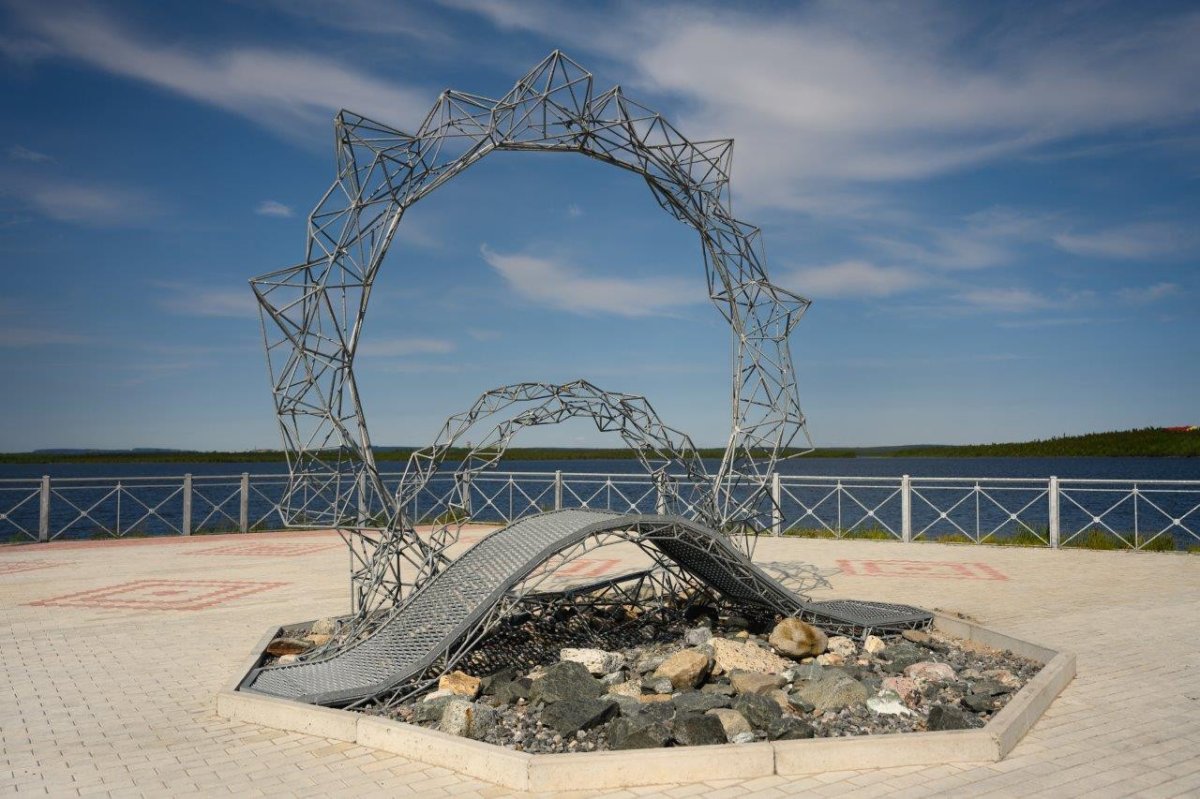 Арт-объект "Солнцекруг" установили на мысе Мечты озера Лумболка в 2021 году. Композиция из металла с говорящим названием – это результат работы первого сезона городской резиденции "АртАртика", организованной Агентством развития Мончегорска.