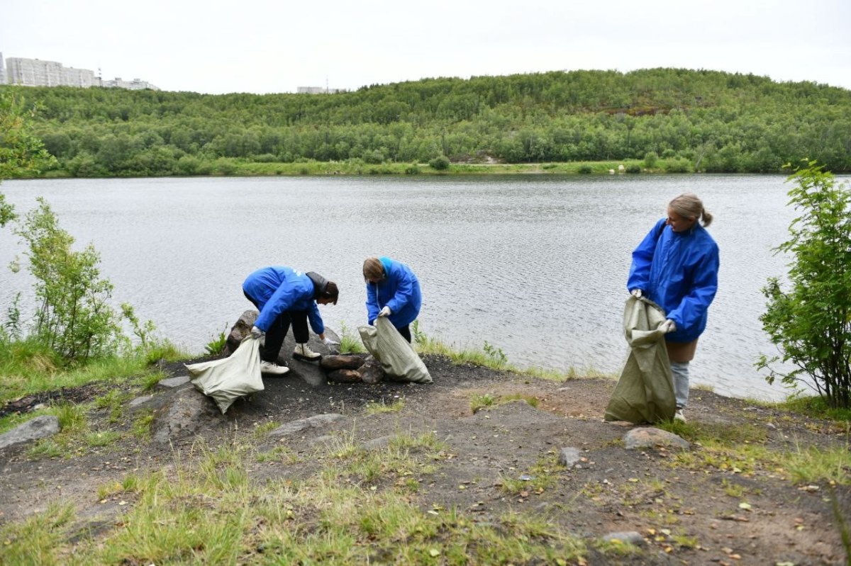 В Мурманске на берегу озера Питьевое высадился экологический десант. Сотрудники и волонтеры Центра развития волонтерского движения в рамках интенсива «Эко-Мурманск» провели уборку территории.