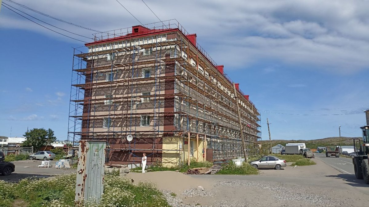 Также этим летом завершится капитальный ремонт трёх многоквартирных домов на улице Школьной. В двух домах замена кровли, облицовка фасадов плиткой, замена окон и дверей вышли на финальную стадию. На очереди - ремонт подъездов. В доме на Школьной, 8 ремонт подъездов уже начался в рамках программы администрации Кольского района.