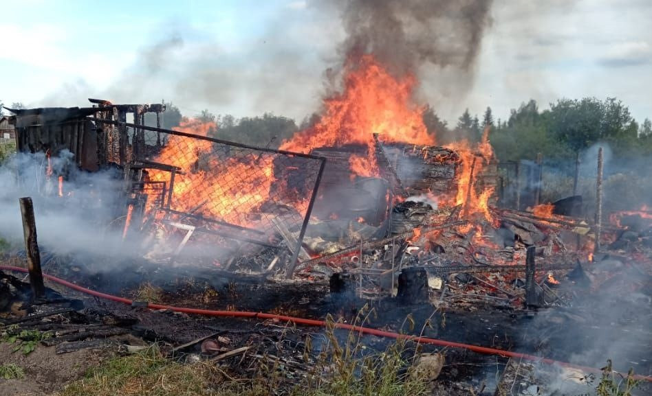 Дотла сгорели и обрушились деревянные одноэтажные дача и баня.