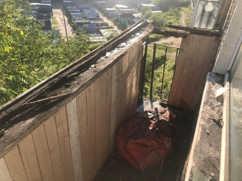 В результате пожара обгорела внутренняя обшивка балкона.
