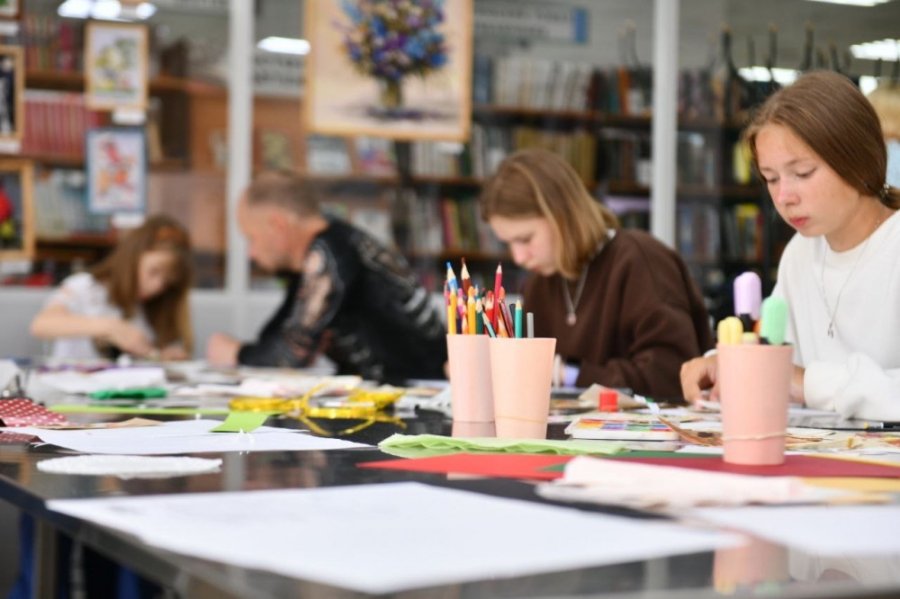 На мастер-классе по изготовлению книжных закладок мурманчане создавали изделия в технике скрапбукинг.
