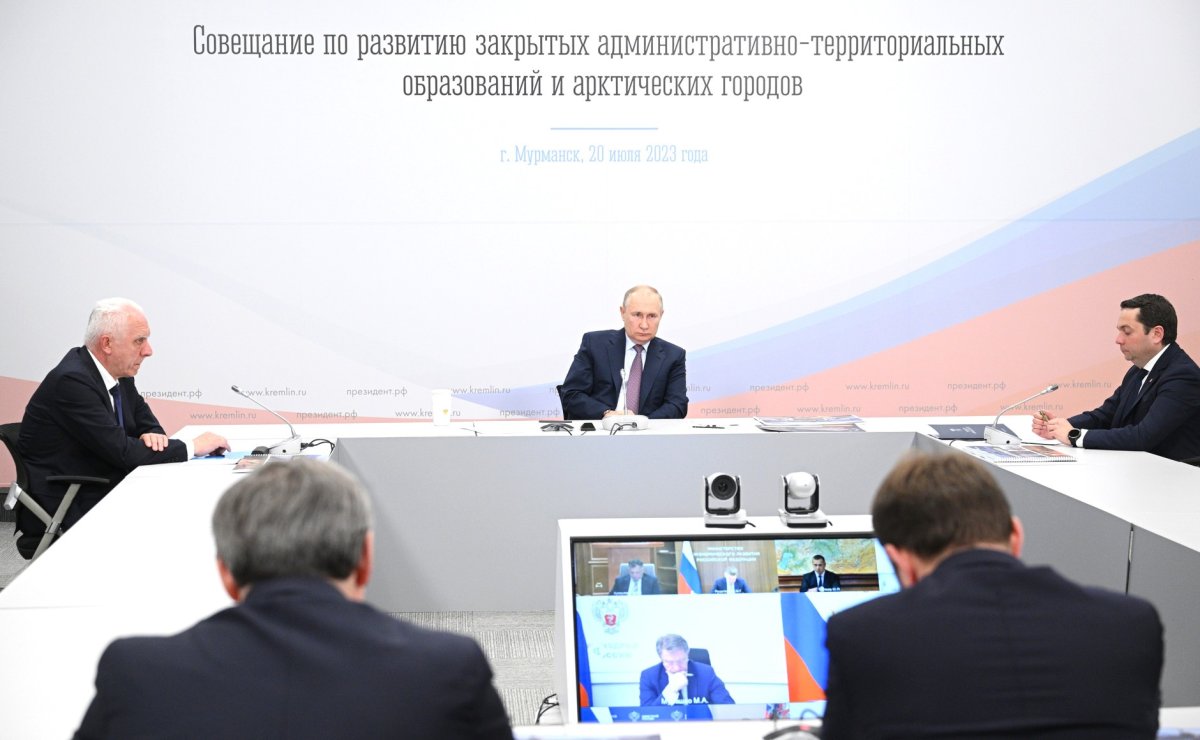 Президент Владимир Путин провёл в Мурманске совещание по развитию закрытых административно-территориальных образований и населённых пунктов в Арктической зоне России. В нём также приняли участие министр по развитию Дальнего Востока и Арктики Алексей Чекунков, полномочный представитель президента в Северо-Западном федеральном округе Александр Гуцан и губернатор Мурманской области Андрей Чибис.