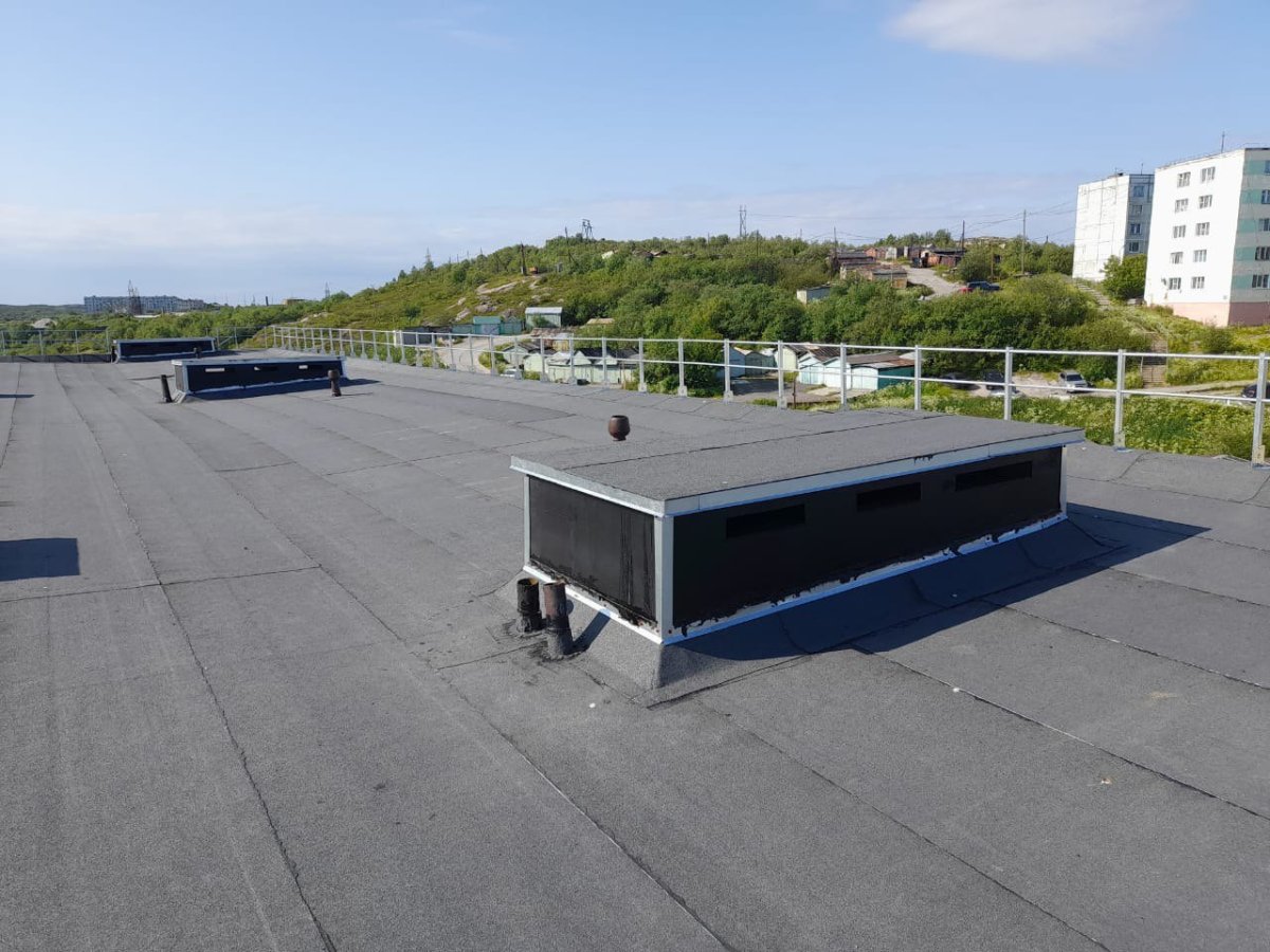Утепление крыши, восстановление вентиляционных шахт, новый каркас с гидроизоляционным покрытием и система водостока, замена дверей и люков выхода на крышу — все эти работы были выполнены в доме на улице Павлова, 59 в Мурманске.