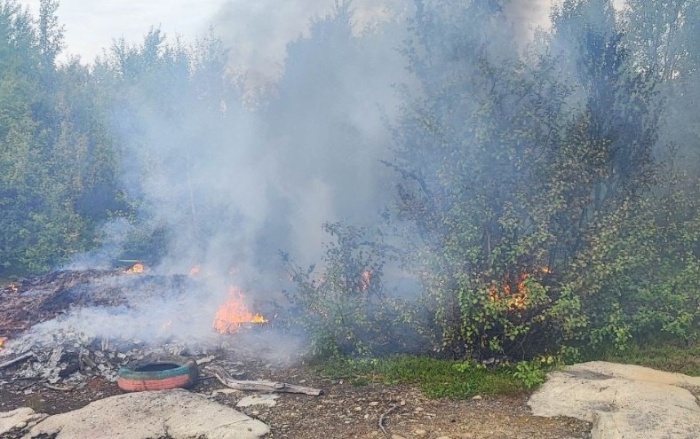 Сегодня днём в трёх километрах от Умбы загорелась несанкционированная свалка. Об этом сообщили в Управлении ГОЧС и ПБ Мурманской области.