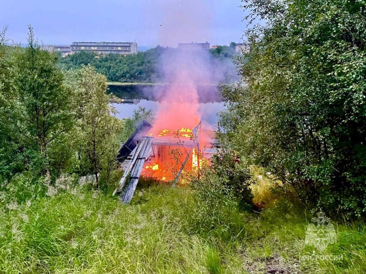 Поздним вечером 15 июля в Мурманске на озере Окунвое загорелся заброшенный деревянный трамплин. Сообщение о пожаре поступило в 23:33.