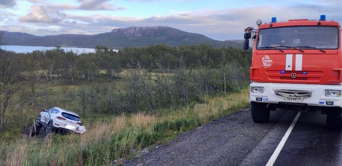 Автомобиль Hyundai Tucson вылетел в кювет на 1442 км трассы "Кола" – в районе озера Портлубол. Информация об аварии поступила в Единую дежурно-диспетчерскую службу в 18:33.
