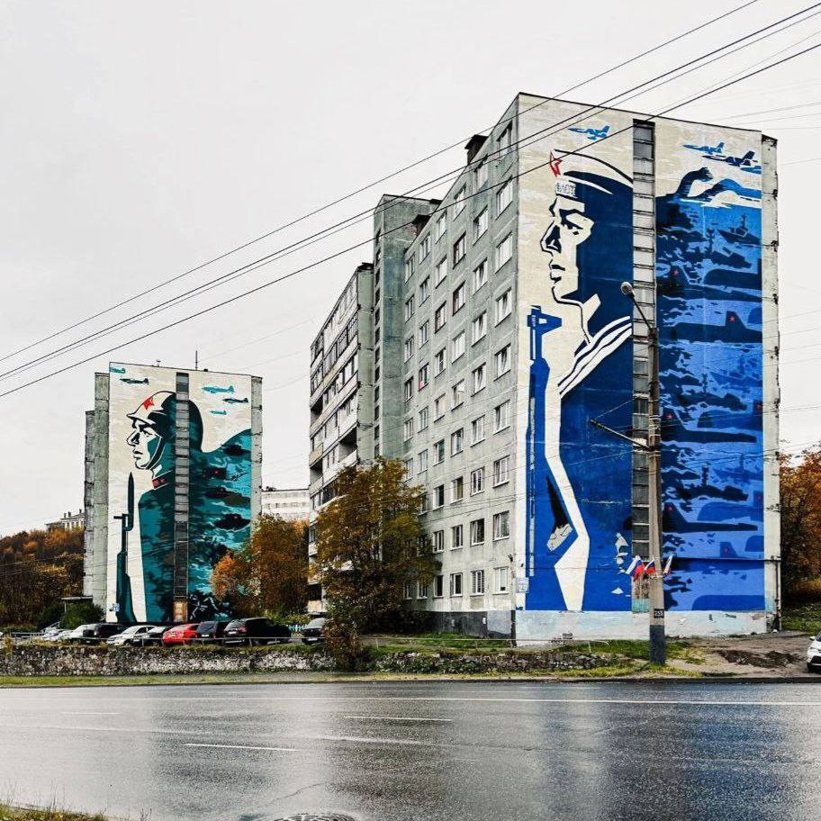 Два новых панно с изображением стоящих в почетном карауле солдата и матроса появились на торцах девятиэтажек на проспекте Героев-Североморцев в Мурманске, сообщает Оперштаб Мурманск.