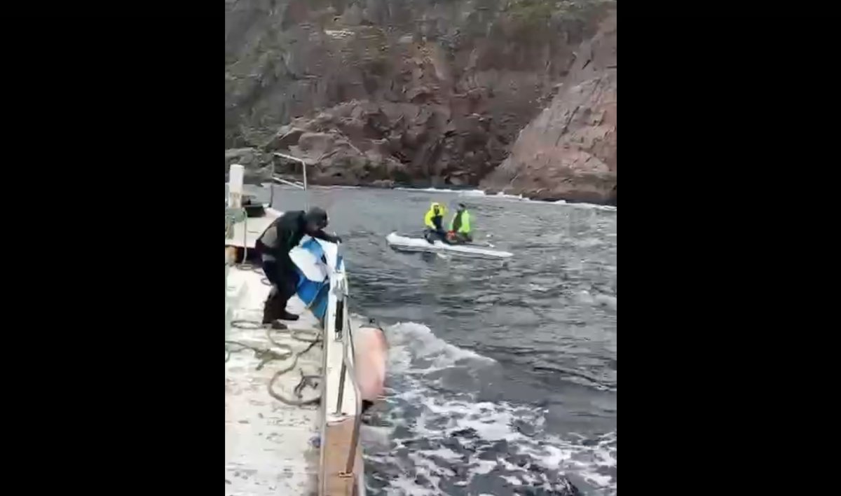 Резиновая лодка рыбаков перевернулась в море.