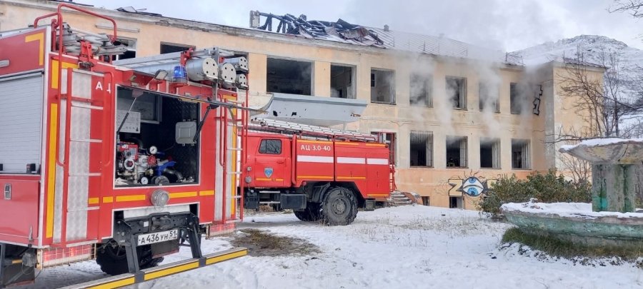 В микрорайоне Кукисвумчорр в Кировске произошел пожар в заброшенном двухэтажном здании. Информация о возгорании поступила в 14:04.