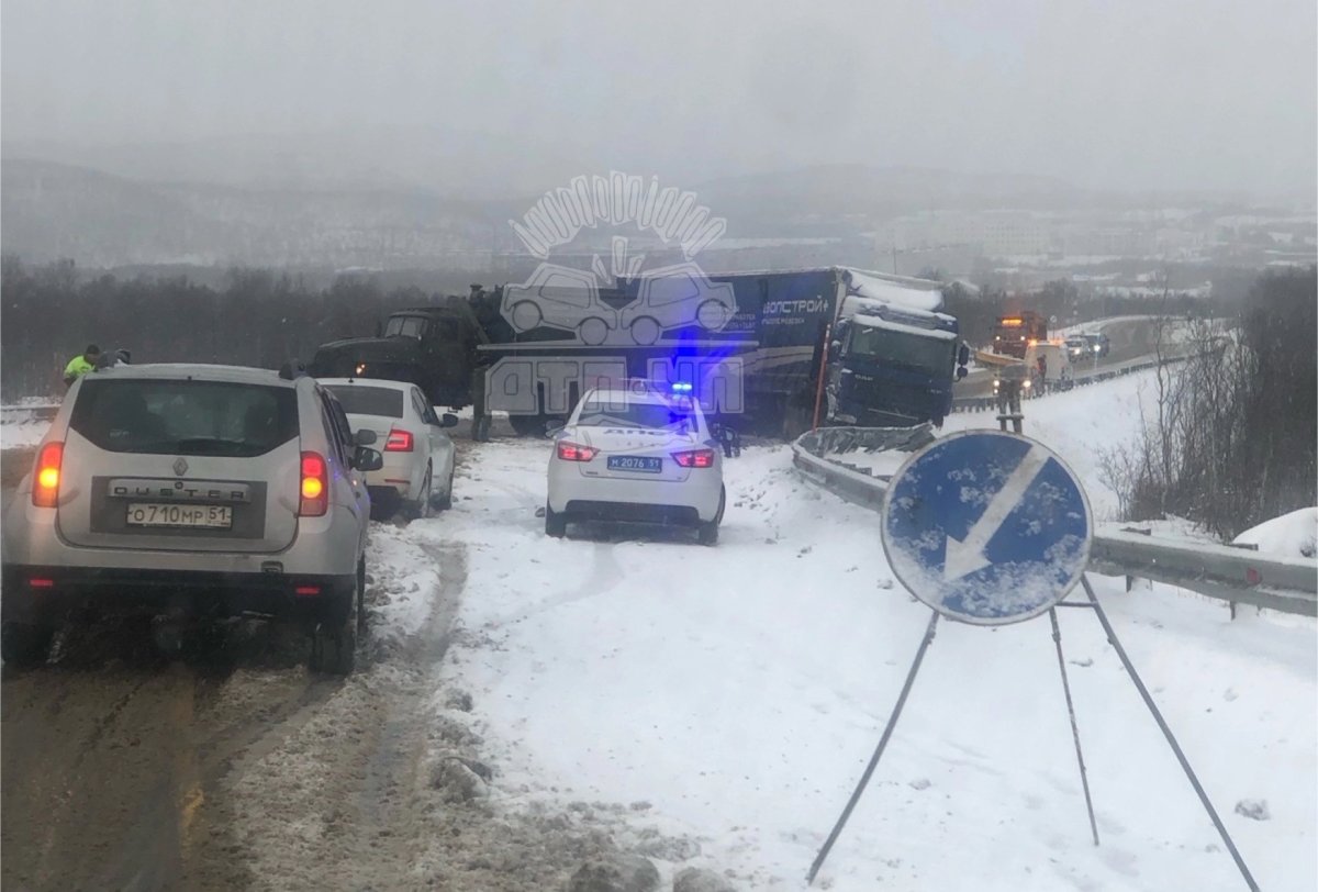 На 1509 км автодороги Р-21 “Кола” в Печенгском округе водитель грузовика с полуприцепом не справился с управление и врезался в дорожное ограждение. Как сообщили в УГИБДД по Мурманской области, за счет габаритов полуприцеп остался на проезжей части.