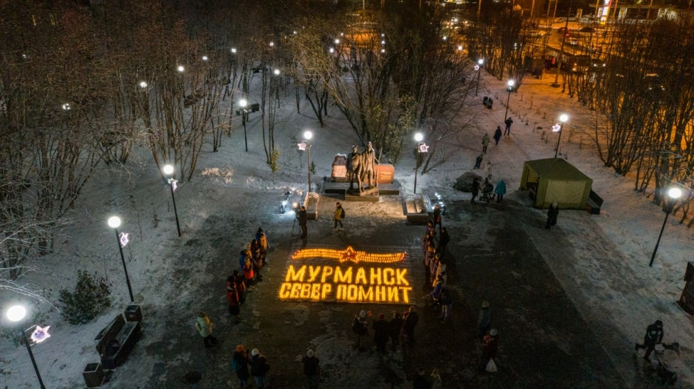 “От его пламени у памятника ”Воинам Полярной дивизии" на проспекте Героев-североморцев зажгли более полутора тысяч свечей", - сообщили в администрации города Мурманска.