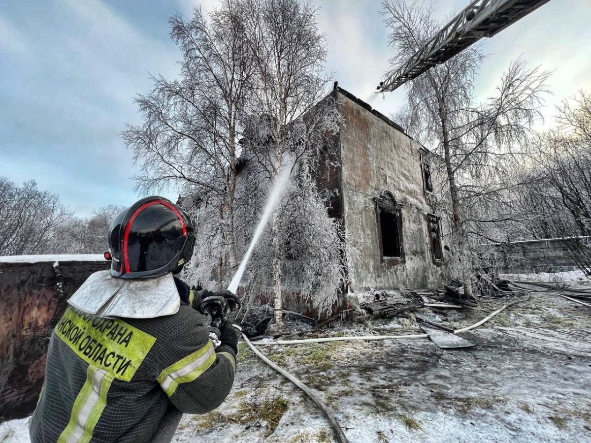 “В результате пожара обгорели деревянные конструкции и строительный мусор на первом и втором этажах и в чердачном помещении здания на общей площади 100 кв.м.” - сообщили в МЧС по Мурманской области.