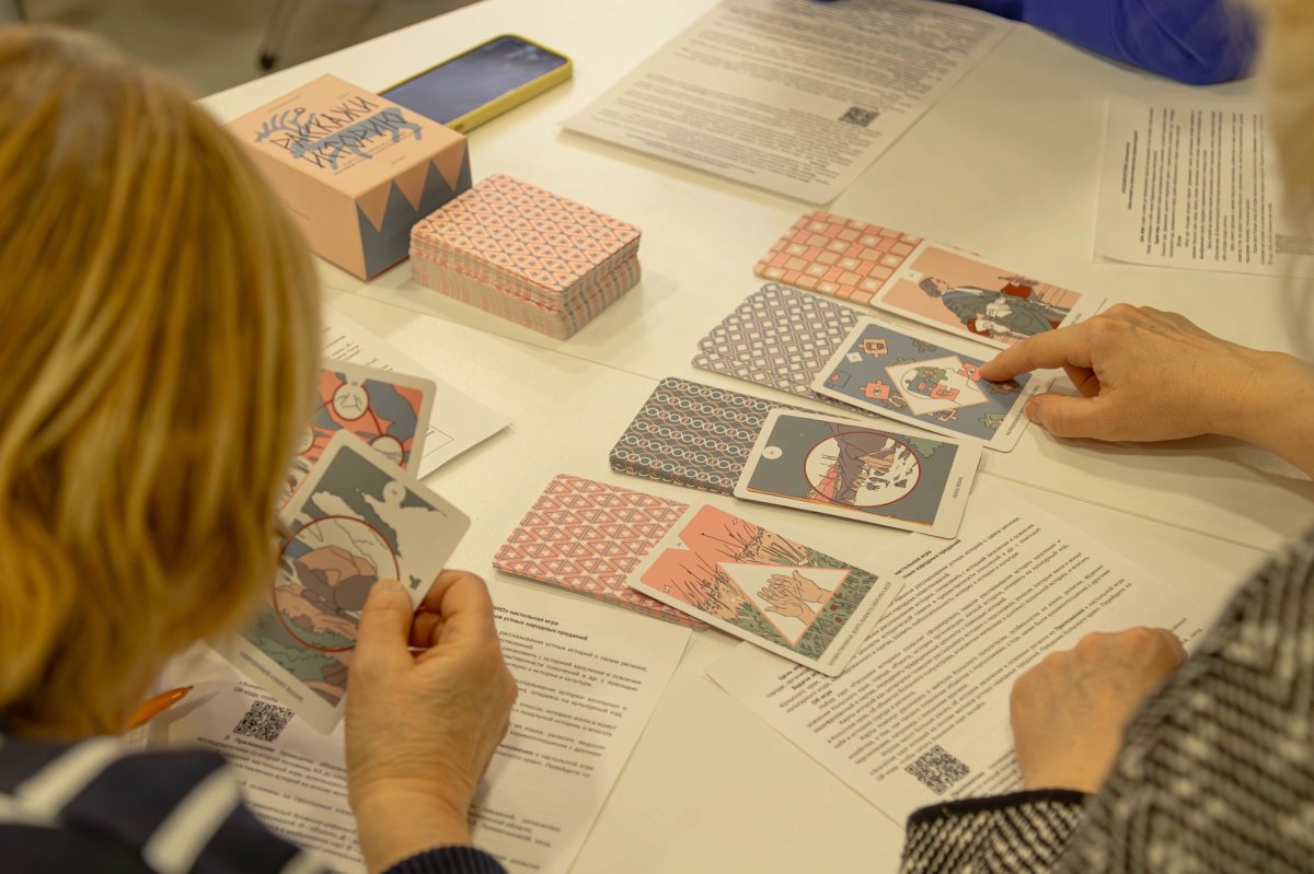 В мурманском пространстве “Сопки.Семья” прошла презентация настольной игры “Расскажи историю”, созданная грантополучателем Юлией Приказчиковой в рамках поддержки регионального Минкульта. Настольная игра содержит карты историй на основе мотивов устных народных преданий.