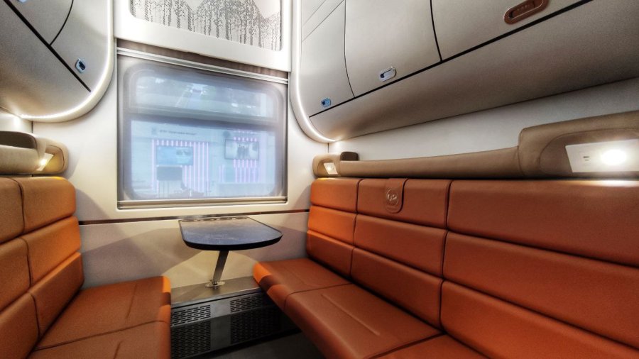 В купе установлено индивидуальное освещение, плоские мониторы для просмотра видеопередач и программ, а также розетки и USB-разъёмы для зарядки гаджетов. Проводника можно вызвать с помощью кнопки. Во внутренней отделке нового вагона использованы качественные материалы отечественного производства, в том числе натуральная кожа.