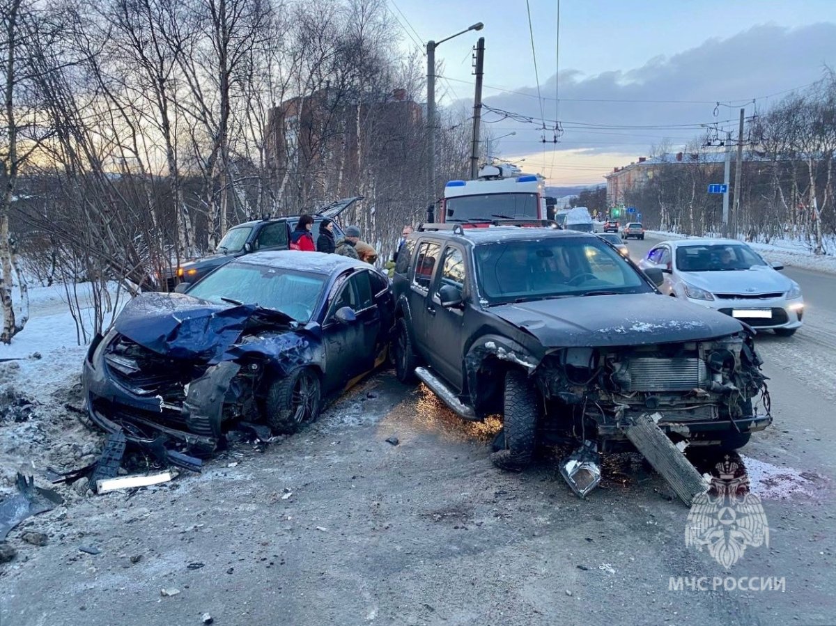 Информация о ДТП поступила в МЧС в 10:45. Спасатели прибыли на место происшествия для обеспечения безопасности и сбора информации, сообщили в ГУ МЧС по Мурманской области.