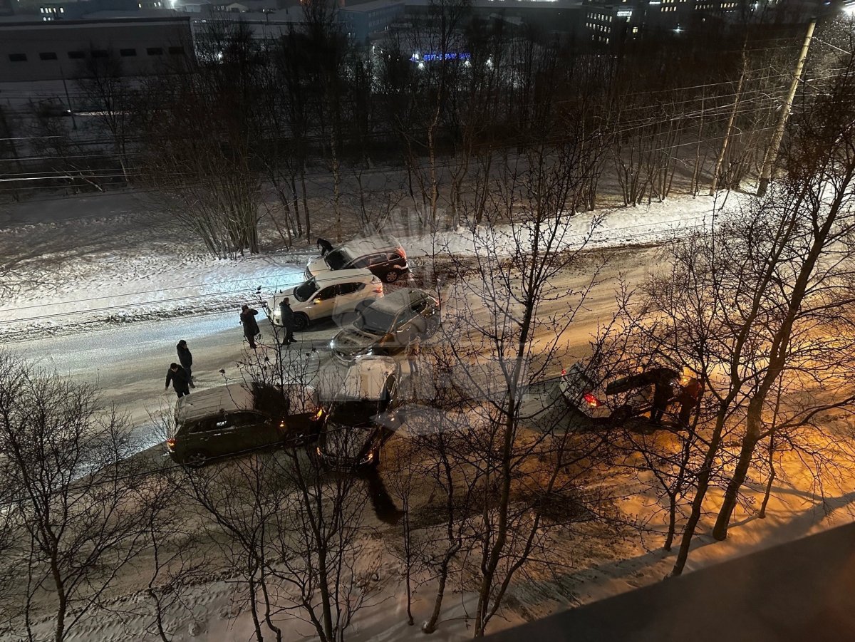 В Мурманске возле дома №37 по улице Шмидта произошло ДТП с участием шести автомобилей. Об этом очевидцы сообщают в социальных сетях.