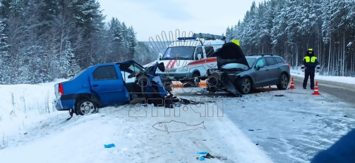 В районе 1325 км автодороги Р-21 “Кола” произошло ДТП с участием двух автомобилей. Водитель Renault совершал обгон, выехав на “встречку”, и столкнулся с автомобилем Volvo.