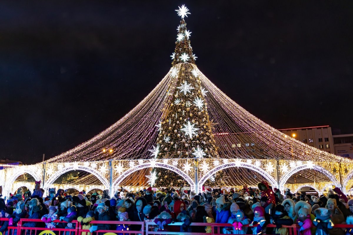 В Мурманске зажгли новогоднюю ёлку. Праздничные мероприятия состоялись на главной площади города в субботу, 9 декабря.