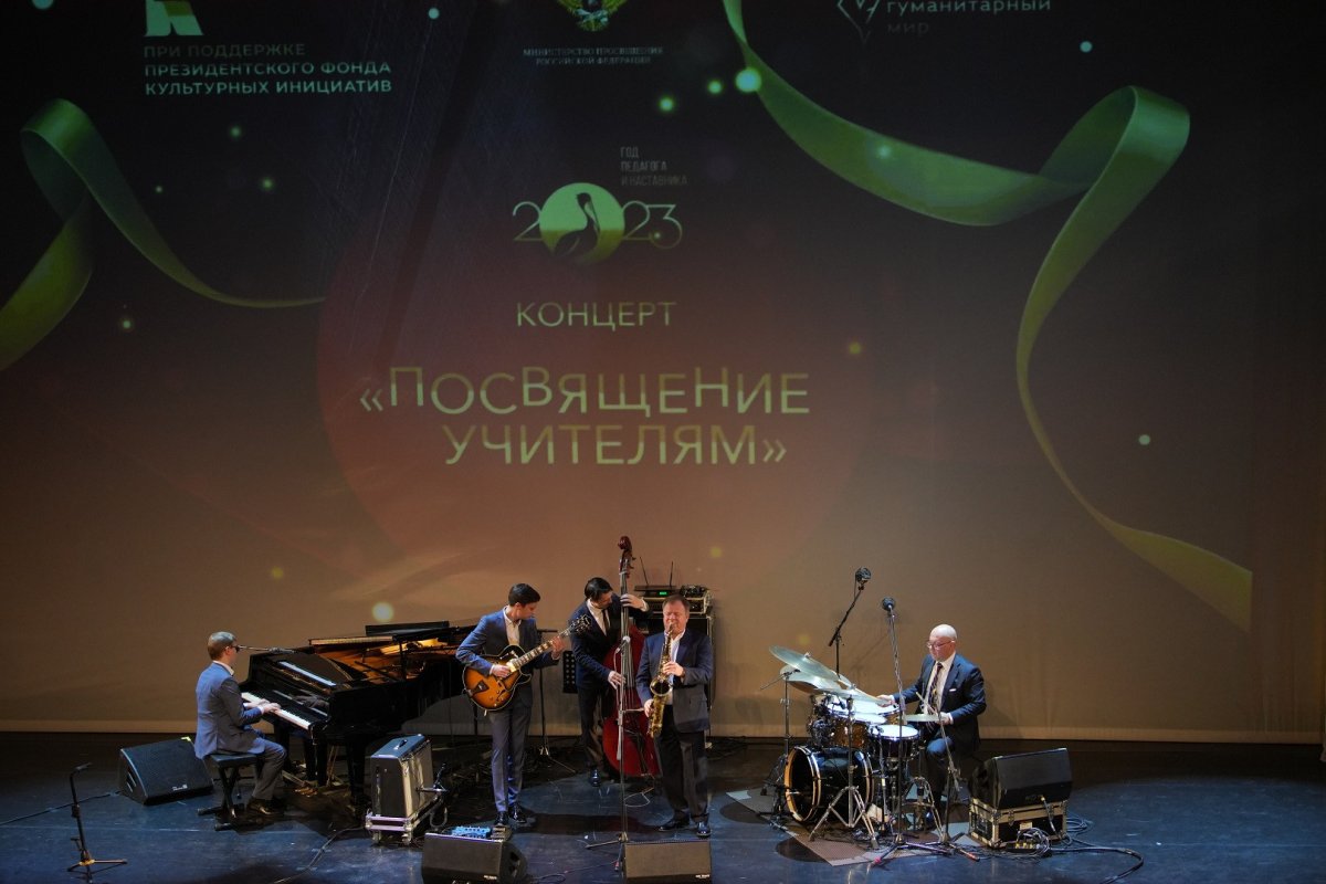 После торжественной части педагогов и работников сферы образования ждал музыкальный подарок от Народного артиста РФ Игоря Бутмана и его джазового квинтета.