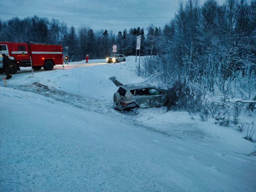 Днём 24 декабря на 1376 км автодороги Р-21 "Кола" произошло ДТП с пострадавшими. Как сообщили в Управлении по ГОЧС и ПБ Мурманской области, столкнулись автомобили Nissan Almera и Toyota RAV-4. Один из автомобилей от удара съехал в кювет.