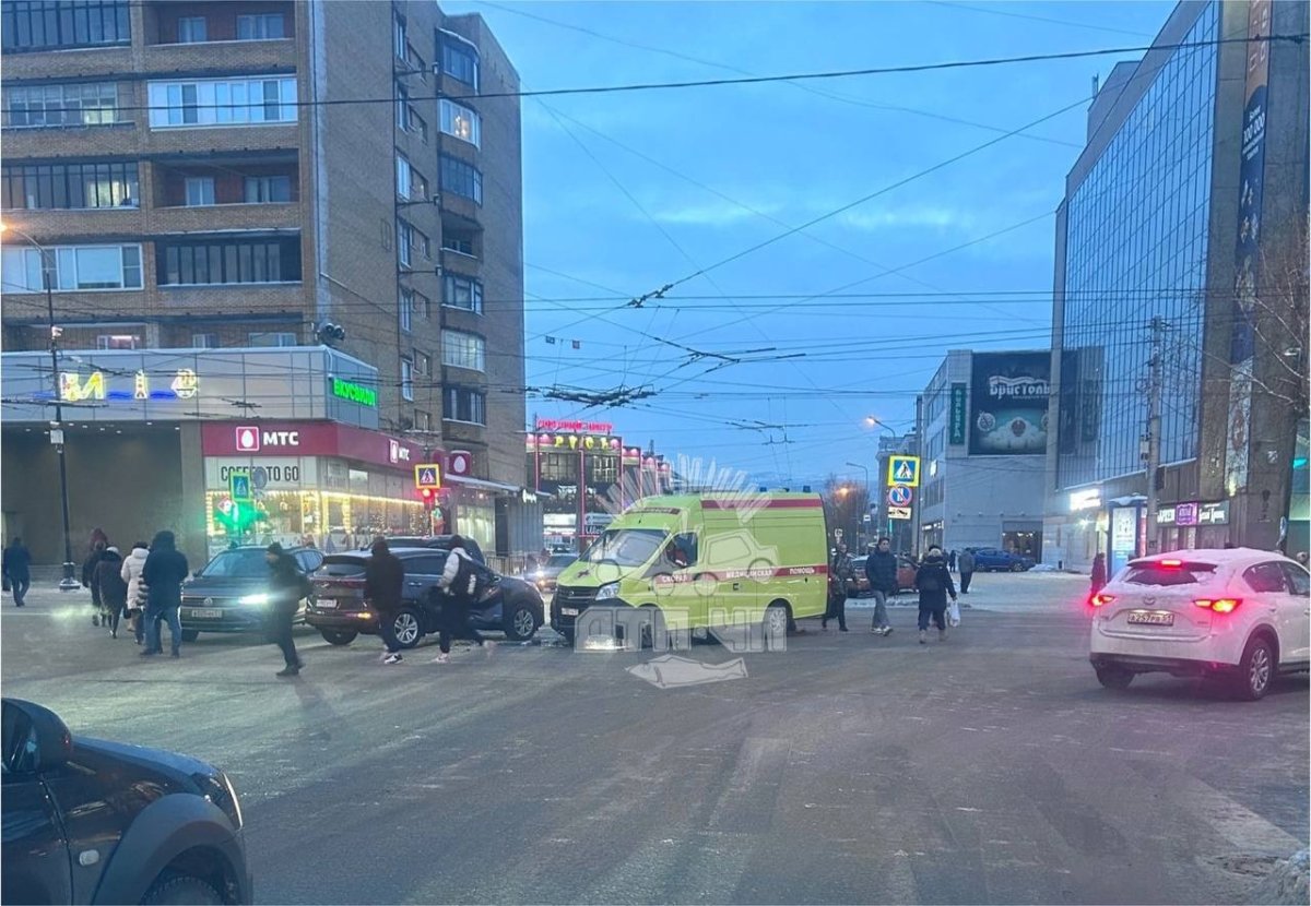 В Мурманске на пересечении проспекта Ленина и улицы Книповича столкнулись автомобиль Kia и машина скорой помощи. ДТП произошло около 12:30.