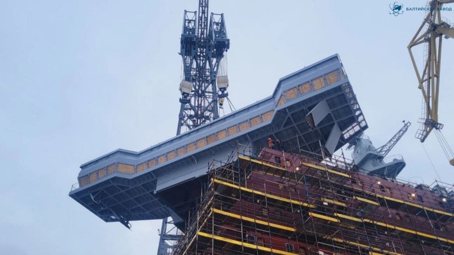Впервые сначала на атомоход была погружена мачта, оснащенная газоходами от резервных дизель-генераторов, а потом уже ходовая рубка. До погрузки на заказ в укрупненный блок секций ходовой рубки был смонтирован ветроотбойник, предназначенный для отвода встречного потока воздуха при движении судна. Масса блока из восьми секций составила порядка 170 тонн. Погрузка данного блока завершила формирование надстройки ледокола, добавив ей два яруса. В ближайшее время специалистам Балтийского завода предстоит установить на атомоходе "Якутия" еще три укрупненных блока.
