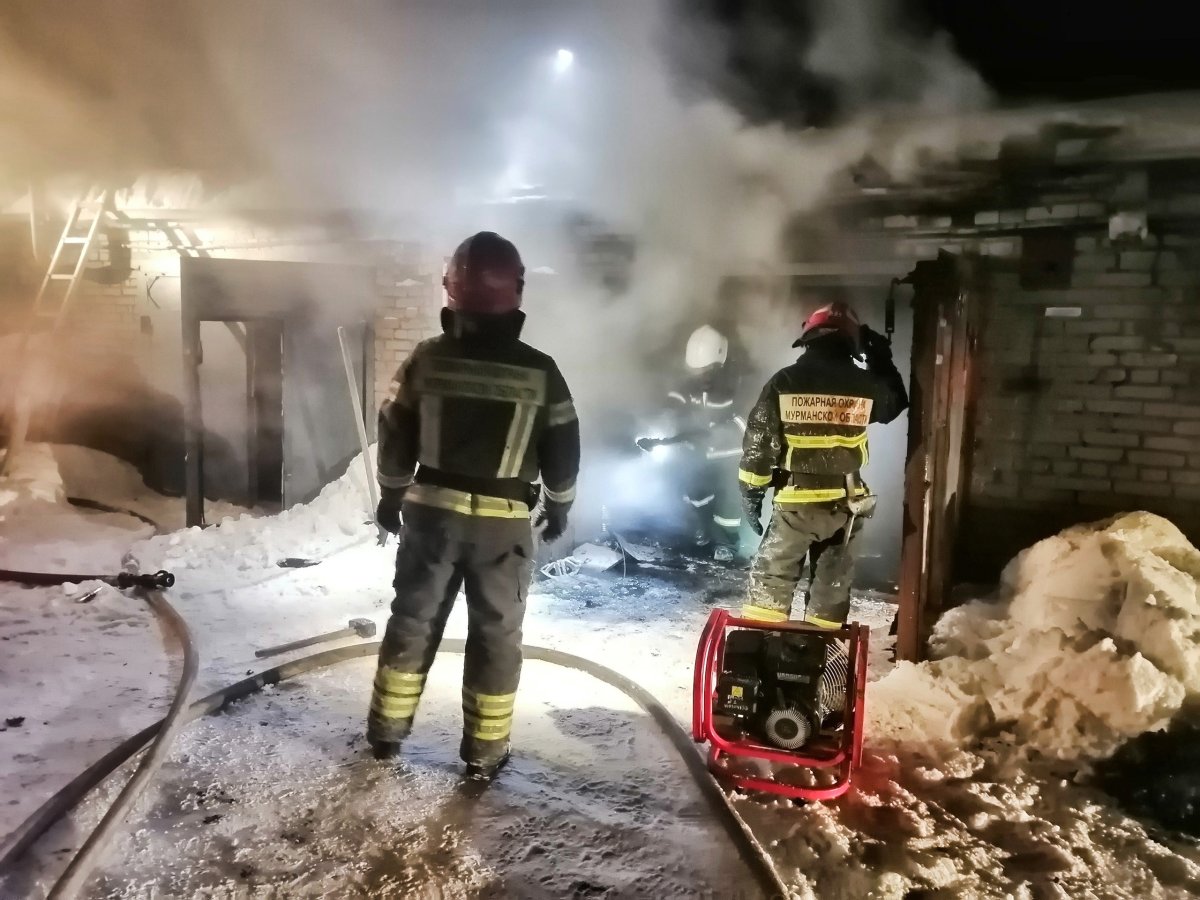Поздно вечером 3 января в Апатитах загорелся гараж. Сообщение о возгорании на улице Строителей поступило в 23:09.