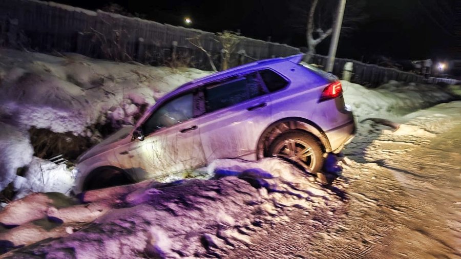Ночью в Кольском районе съехал в кювет легковой автомобиль Volkswagen Tiguan. Личным составом 20 пожарной части Кольского филиала и спасателями Управления проведены работы по осмотру, обозначению и обеспечению безопасности места ДТП, сбору данных.