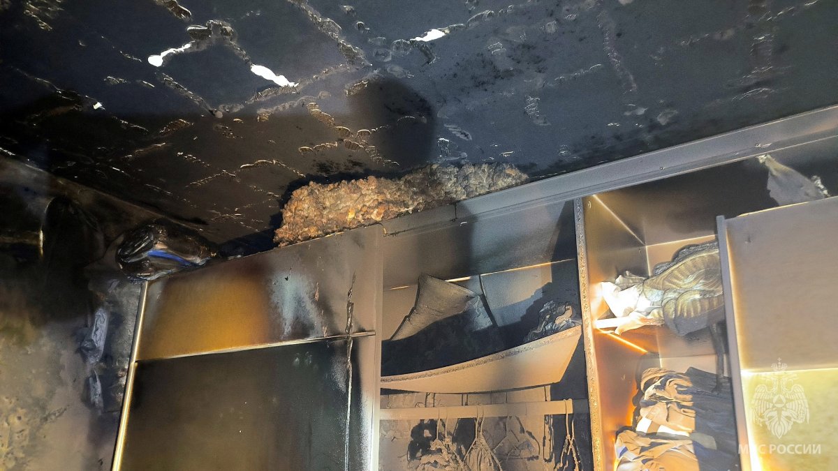 К прибытию огнеборцев густой дым уже валил из окон. К тушению привлекались три единицы пожарной техники. Работало одно звено ГДЗС. Огонь уничтожил бытовую технику, стены и потолок закопчены по всей площади комнаты. Пострадавших нет.