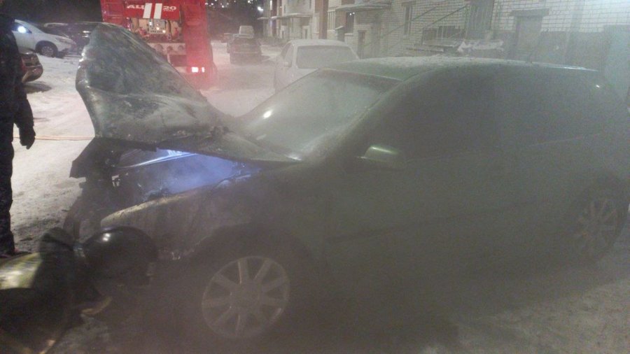 Вечером в субботу в Коле у дома №23 по улице Красноармейская горел легковой автомобиль.