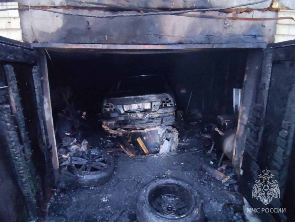 В результате пожара огнём повреждены кровля и стены, а также легковой автомобиль BMW. Площадь пожара составила 40 квадратных метров. Кроме того, частично повреждена кровля соседнего гаража.
