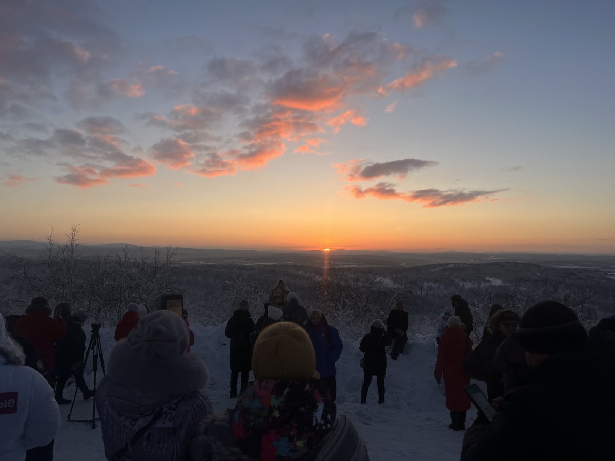 Мероприятие проходит на сопке “Солнечная горка”. Напомним, первый восход солнца начался в 12:45. Продолжительность дня составит 20 минут.