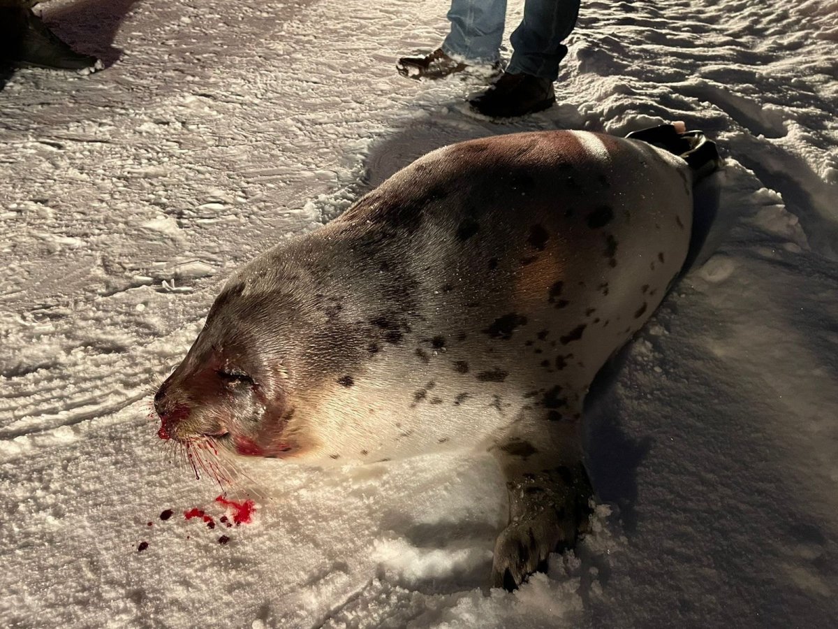 Отмечается, что пострадавшее животное – гренландский тюлень. Он не входит в Красную книгу.