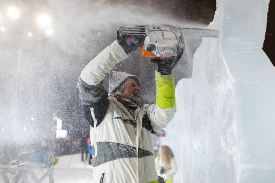 Напомним, всего за 90 минут художники-скульпторы с помощью бензопил и других подручных инструментов превращали глыбы льда в оригинальные полутораметровые ледовые композиции.