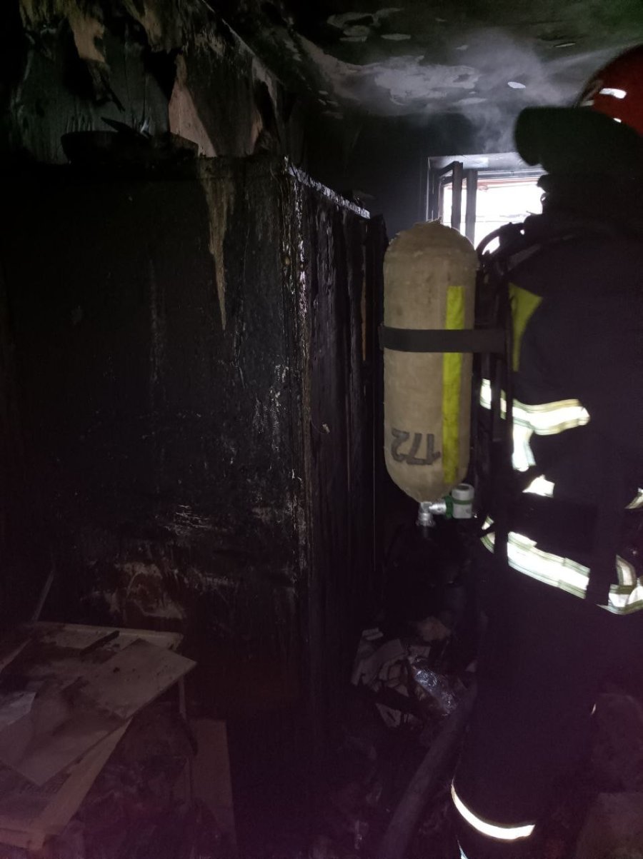 В результате пожара в одной из комнат двухкомнатной квартиры обгорели вещи на площади 15 квадратных метров. Стены и потолок закоптились по всей площади квартиры. Нарушено остекление.