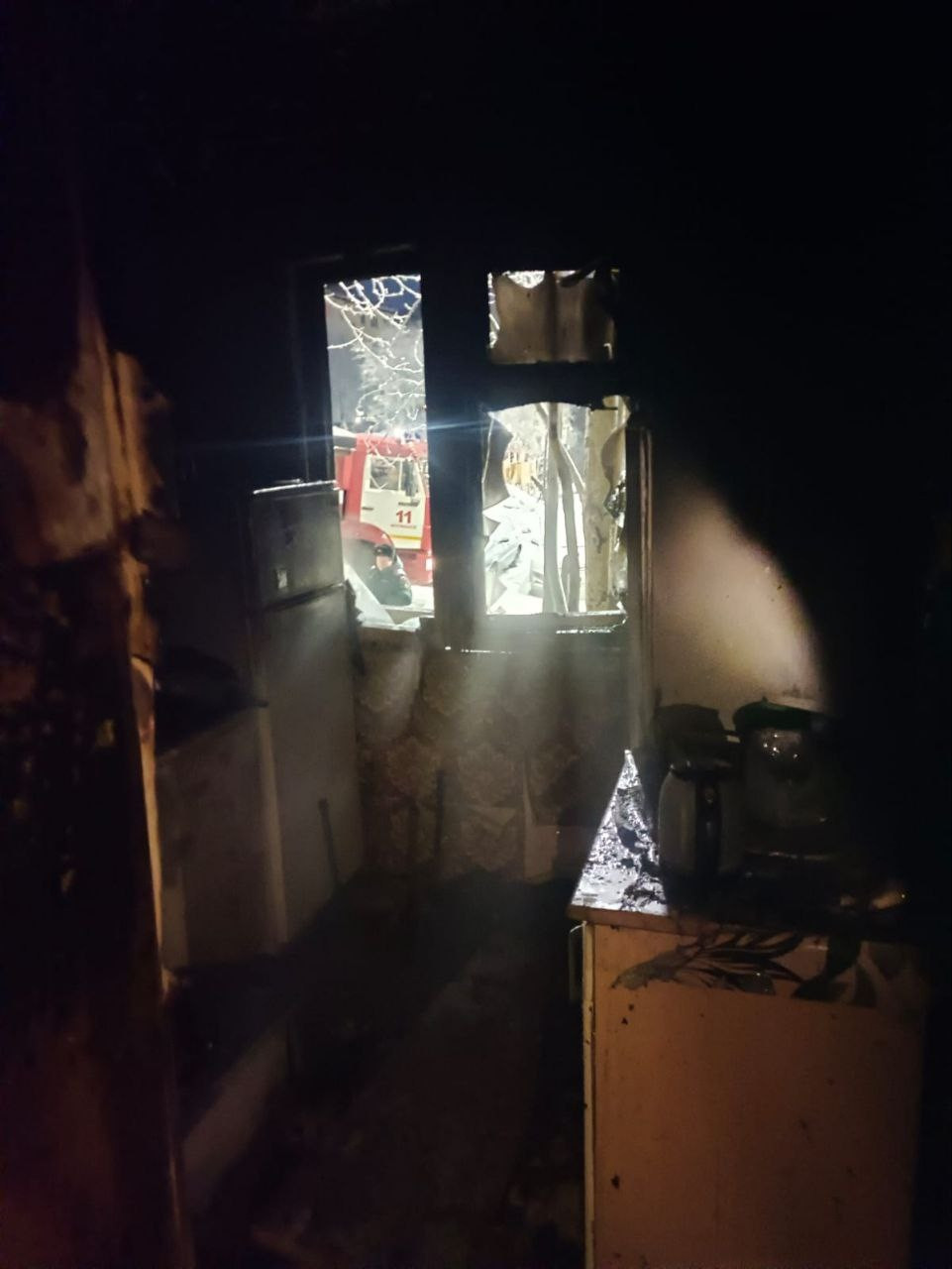 В результате пожара в трёхкомнатной квартире на первом этаже огнем повреждены помещения кухни, коридора и одной из комнат на общей площади 15 квадратных метров. Нарушено остекление окон в квартире и в подъезде.