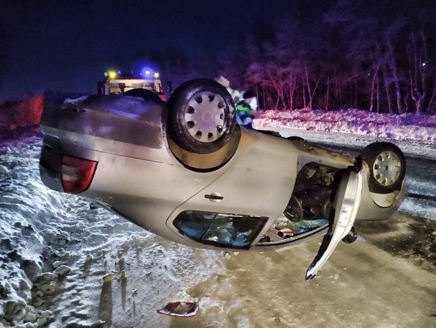 На дороге произошло опрокидывание легкого автомобиля Skoda Octavia. В результате ДТП один человек пострадал, медики обслужили его амбулаторно на месте ДТП.