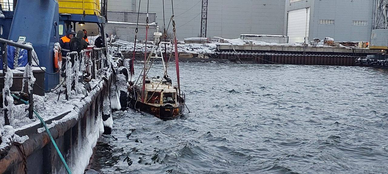 Водолазы Морспасслужбы сообщили, что успешно подняли затонувший катер “КИМ”. Сейчас он находится на причале службы в Кольском заливе.