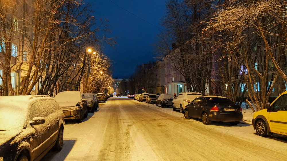 Сегодня утром в Мурманске температура воздуха составляет -7 градусов, ветер юго-западный 6-10 м/с.
