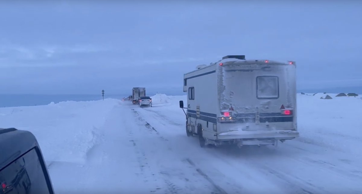 Первая колонна отправилась из Териберки и Туманного в 8 часов утра, в составе которой отправились рейсовые автобусы “Мурманск - Териберка” и "Мурманск - Туманный". Обратно колонна будет сформирована в 11 часов (ориентировочно).