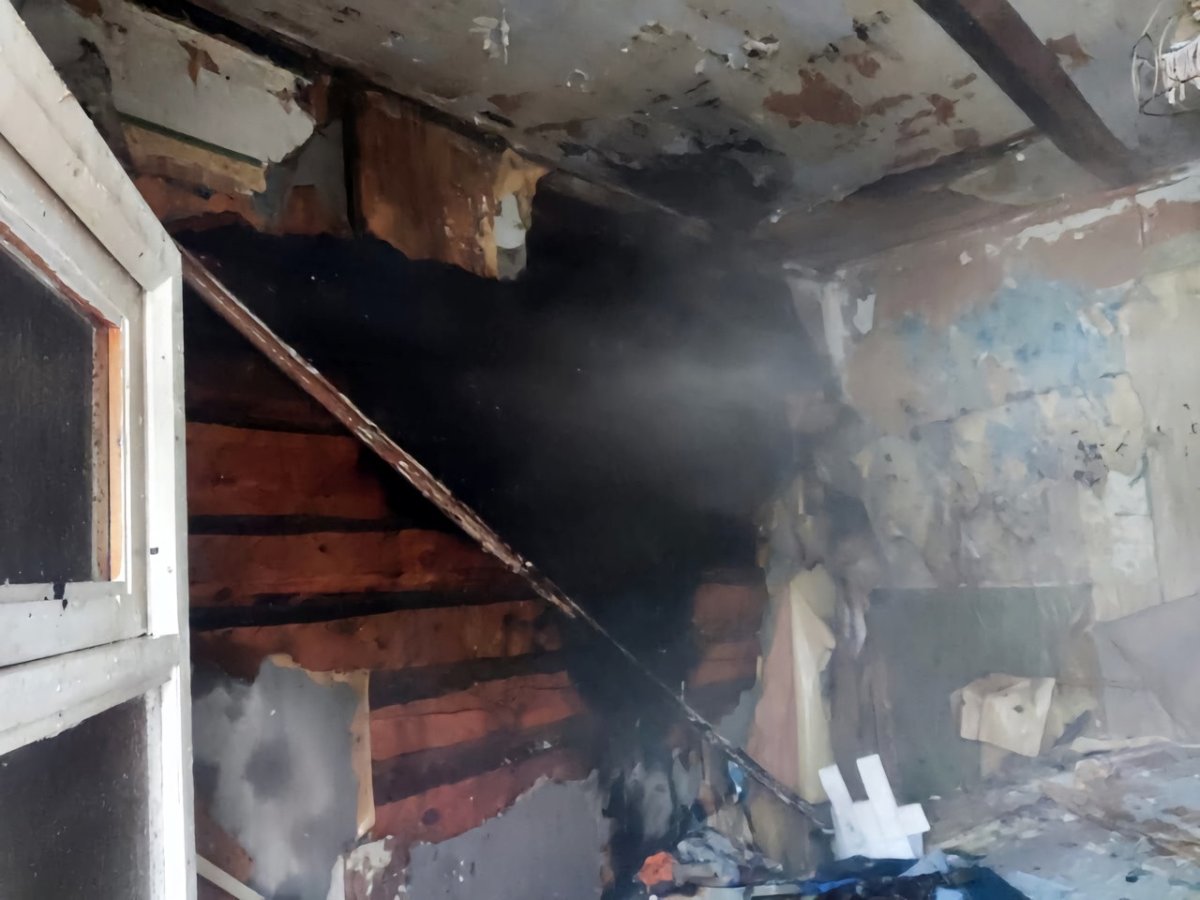 В результате пожара в одной из квартир деревянного дома обгорели спальные принадлежности на кровати, общая стена в двух квартирах, чердачное перекрытие. Разобрана стена и чердачное перекрытие.