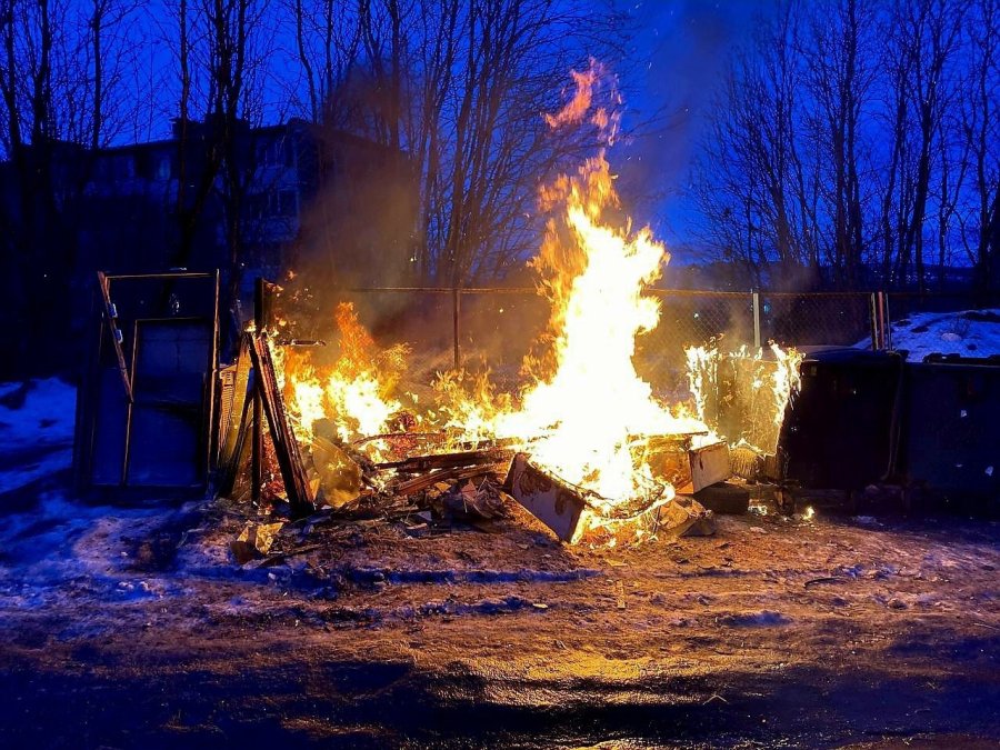 Вечером 1 марта в Мурманске произошло возгорание мусора. Сообщение о пожаре на улице Аскольдовцев, 16, поступило в 20:03.
