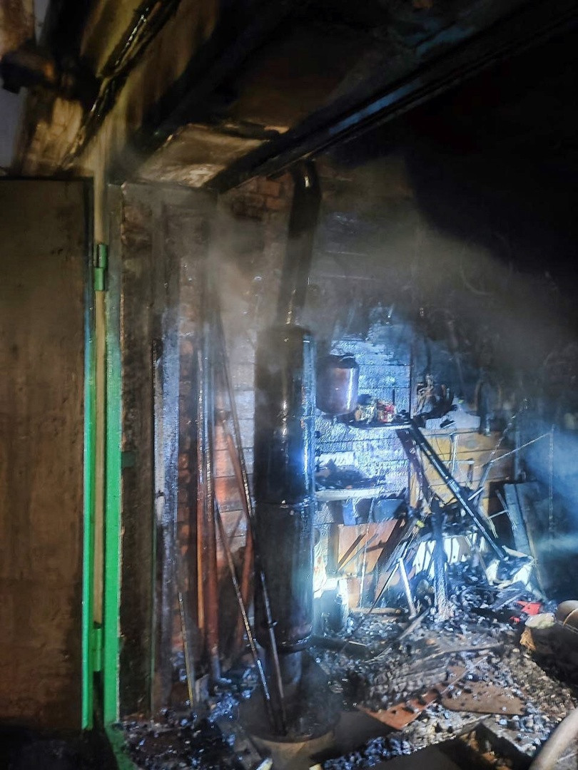В кирпичном гараже сгорела деревянная внутренняя обшивка