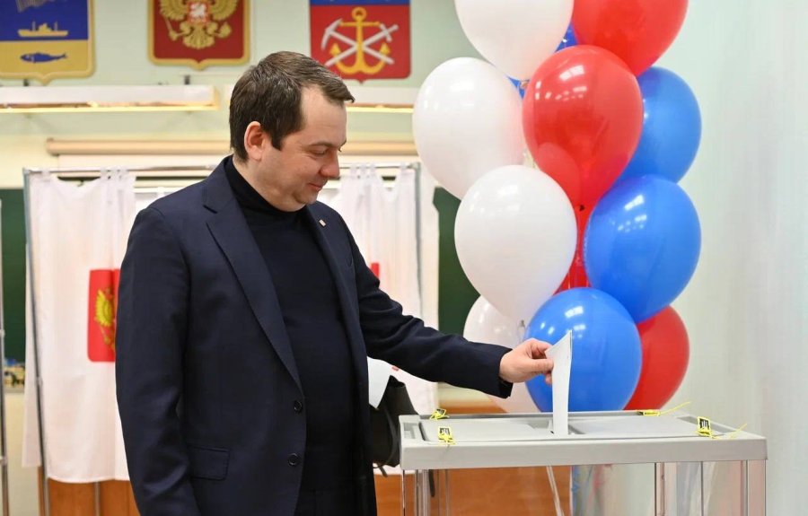 Губернатор Мурманской области Андрей Чибис принял участие в выборах президента России. На избирательный участок он пришёл вместе с супругой.