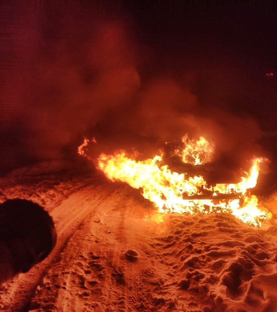 В 3:15 пожар был потушен. У автомобиля обгорел капот, повреждено лобовое стекло, закоптился салон.
