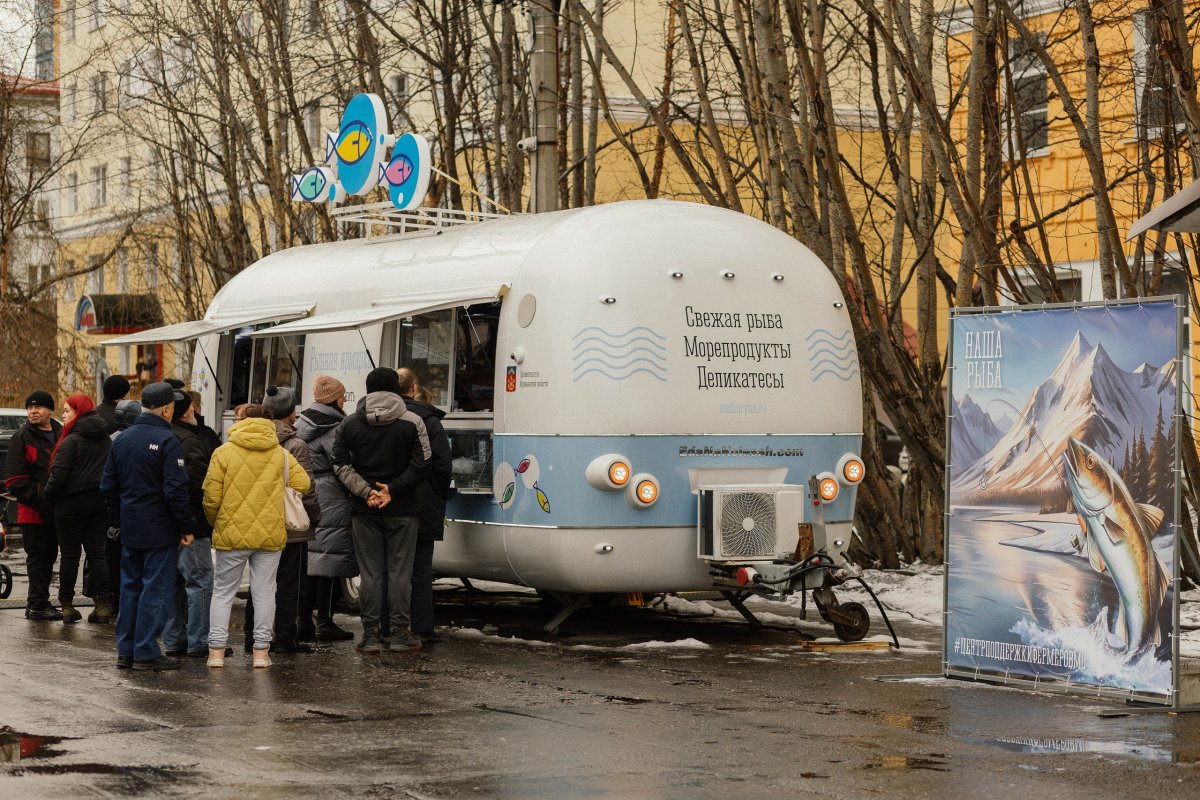 В центре Мурманска на Воровского продлили работу мобильной ярмарки “Наша рыба”. Как сообщили организаторы, работа продлена до 22 марта включительно.