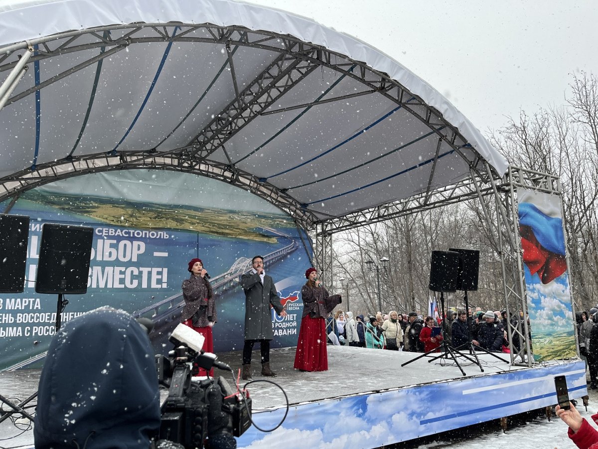 В понедельник, 18 марта, в Мурманске состоялся митинг, посвящённый десятилетию присоединения Крыма к России. Мероприятие состоялось в сквере на улице Ленинградская.